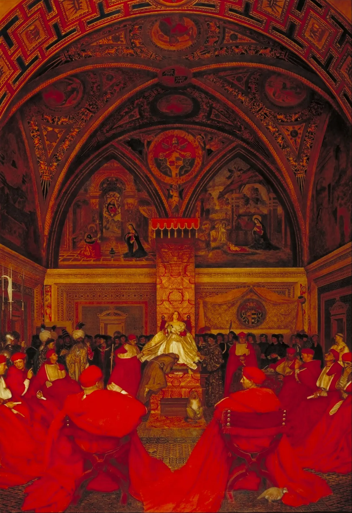 Frank Cadogan Cowper, Lucrecia Borgia reina en el Vaticano en ausencia del Papa Alejandro VI (ca. 1910). Tate Gallery, Londres.